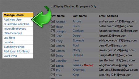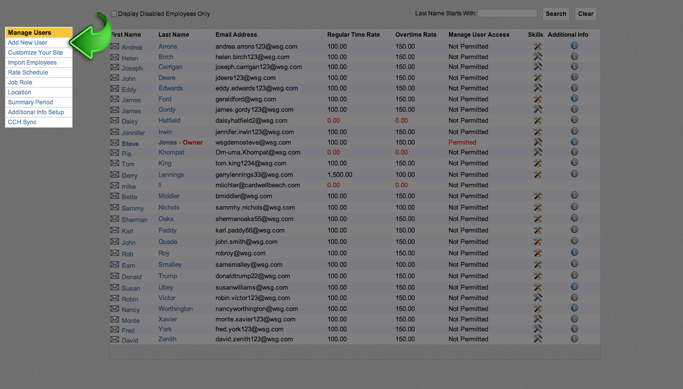 To begin, click the “Mange Users” tab. This takes you to a landing page displaying current users and a list of control options.